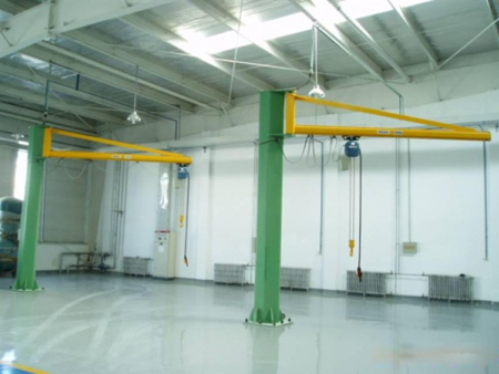 欧式悬臂吊起重机,具有自重轻,结构小巧,能耗较低,在桥架上设置一台小车及起升机构,小车可以前后运行,大车运行等机构,实现物料物体在立体空间搬运,欧式起重机采用好的设计理念,具有尺寸小,重量轻,轮压小的特点。与传统起重机相比,吊钩至墙面的距离小,净空高度低,起重机更能贴近前面作业,起升高度更高,实际增加了现有厂房的有效工作空间。由于起重机具有重量轻,轮压小的特点,新厂房空间可以设计的更小,功能更齐全。较小的厂房意味着初期建设投资,以及长期供热、空调及其他维护费中可以节省一笔可观的资金